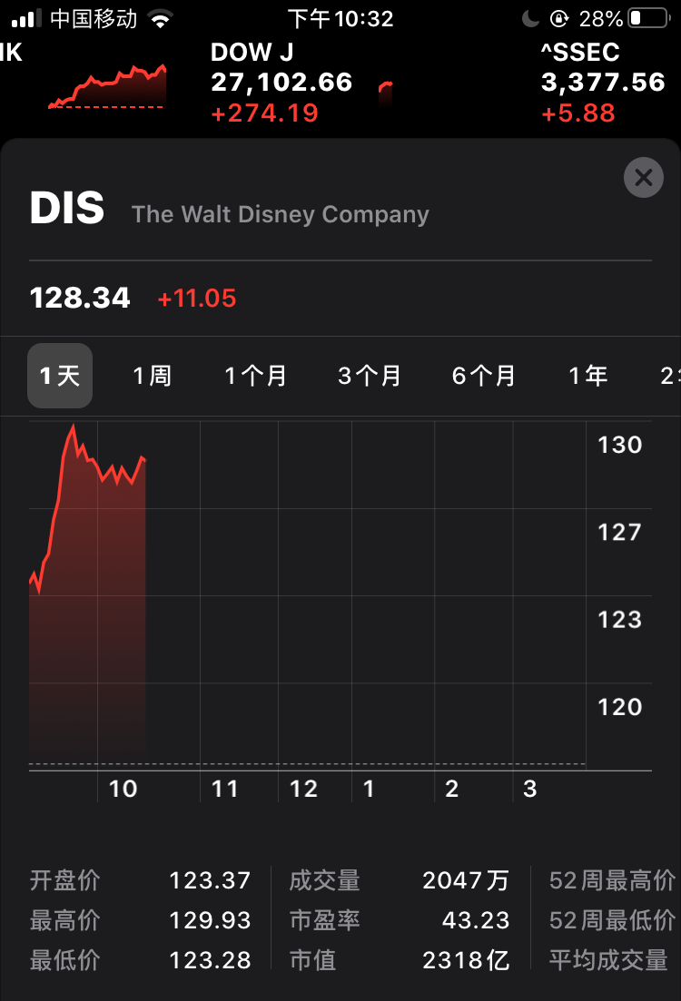 延期复延期的《花木兰》,最终选择流媒体平台。而这个消息,让迪士尼股价在美国时间8月5日开盘后一小时就上涨了9.53%。