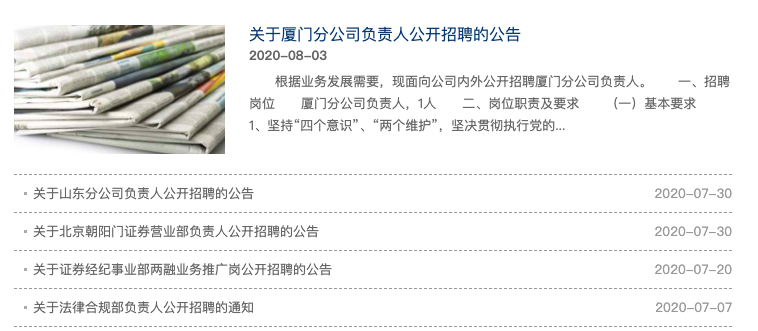 从信达证券公布的信息来看,目前公司仍在大幅招聘,招聘岗位包括法律合规部负责人,及公司部分分公司及营业部的负责人。