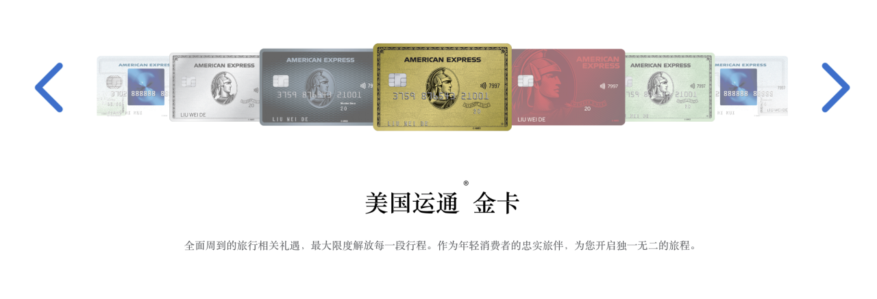 其中,美国运通耀红卡是专为中国市场设计,在中国首发且唯一的大红色卡板,此外,运通还向中国市场发行绿卡、金卡、白金卡等包含不同权益的信用卡。