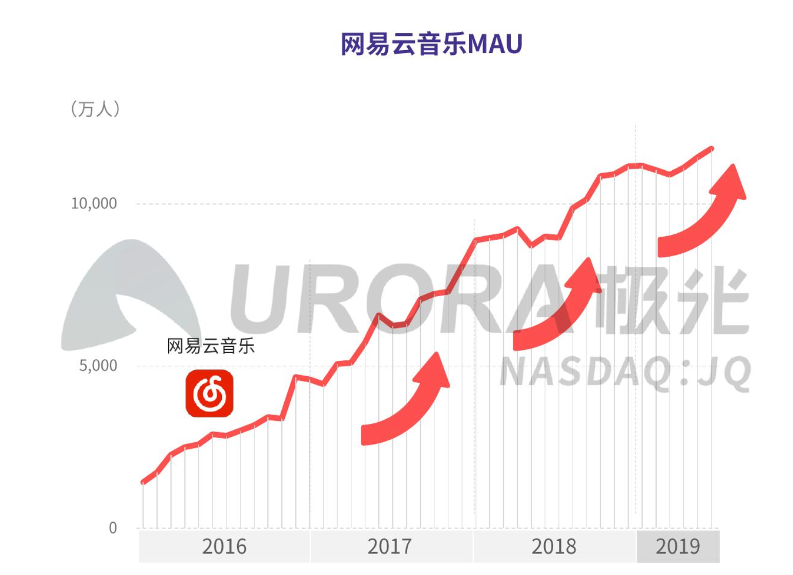 阿里、百度先后败阵于在线音乐领域后,网易云音乐一跃而起成为黑马。根据极光大数据发布的《2019年国内在线音乐社区研究报告》显示,截至2019年网易云音乐的MAU已经超过一亿,成为国内头部在线音乐平台中唯一的非腾讯系选手。根据网易云音乐官方在去年公布的数据显示,其注册用户数量已经突破8亿。