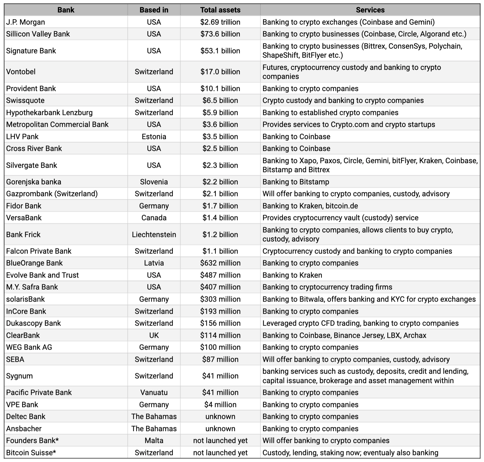 但随着加密货币行业的持续增长,尤其是专注加密货币业务的公司逐步走向上市,大型银行最终将向加密货币客户敞开大门。与去年相比,加密货币友好型银行的数量增加了10家,而与2018年相比,这一数字更是增加了三倍。