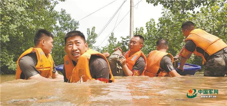 这次出发前,我给在家休假的他发了条微信:“排长,我们去抗洪啦!”