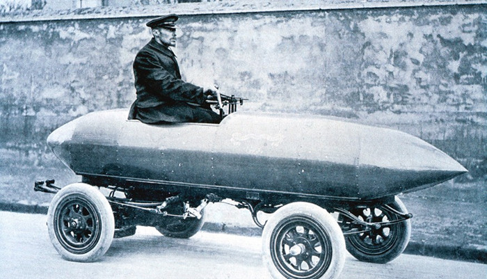 在早期的赛车运动中,电动车曾占有很大的疆域。1899年,比利时人Camille Jenatzy与他的工程团队造出了第一款突破100公里时速的电动车,它依靠的是两个最大功率为25千瓦的电机,就是图中的这辆像鱼雷似的车。它的车身由轻量化的铝钨合金制成,并采用了米其林轮胎。