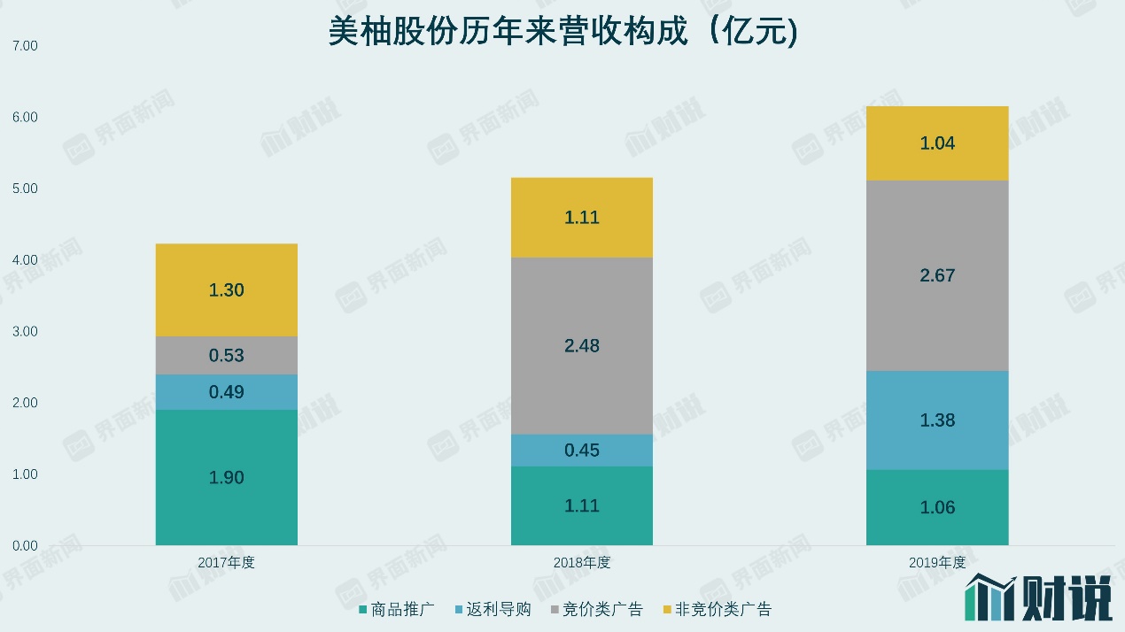 从返利导购的毛利率来看,这是一笔只赚吆喝不赚钱的买卖。2019年,返利导购营收达到1.38亿元,成本为1.17亿元,毛利率仅为15%。2017年以及2018年,毛利率分别为47%以及41%。