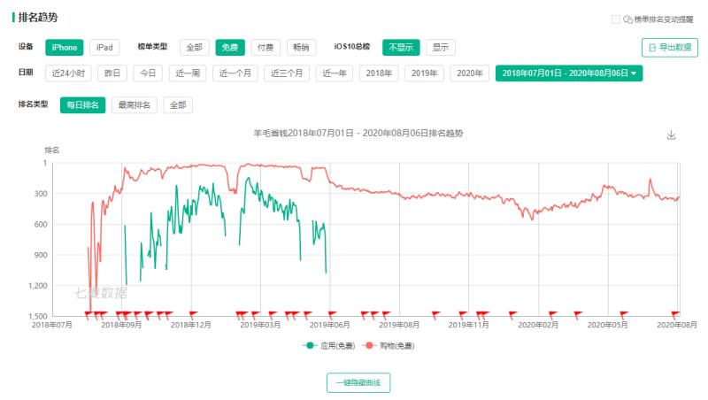 但从羊毛省钱APP在苹果商店的排名变化看,这种“开拓市场”战略并未达成。