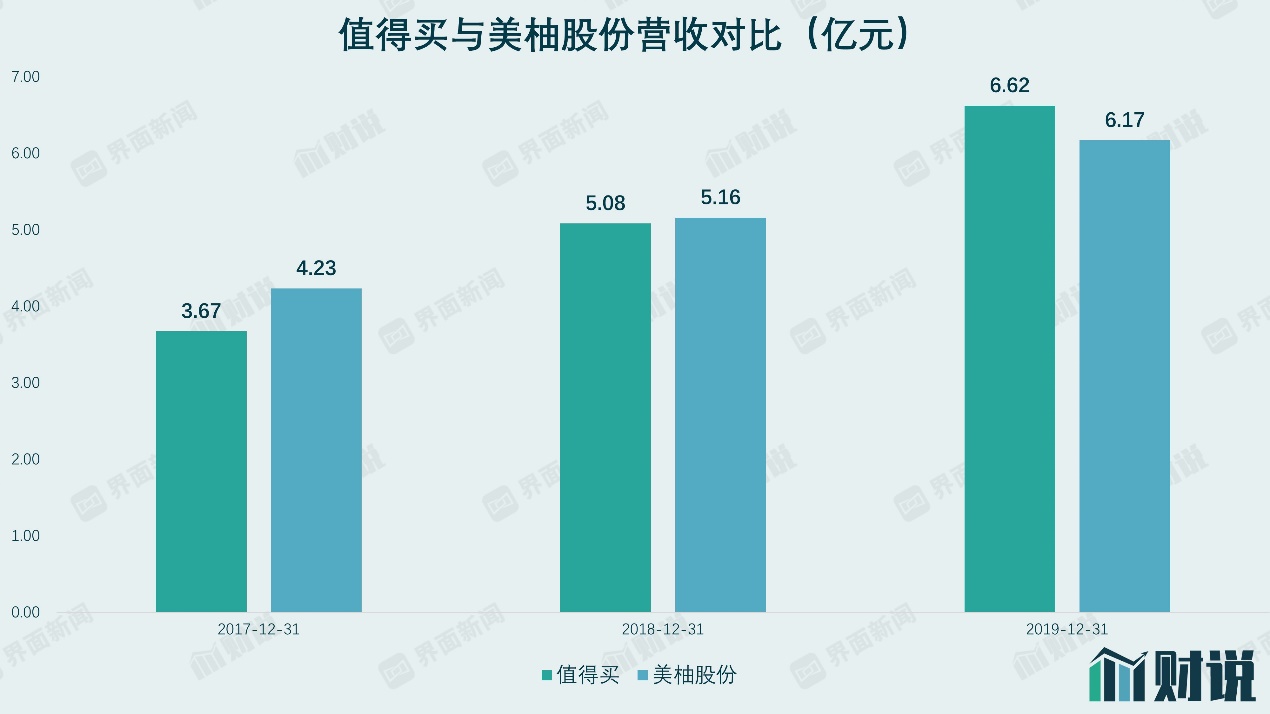 2017年,值得买和美柚股份的营收分别为3.47亿元和4.23亿元,值得买还落后了一大截。但到2019年,值得买的营收达到6.6亿元,实现了反超。