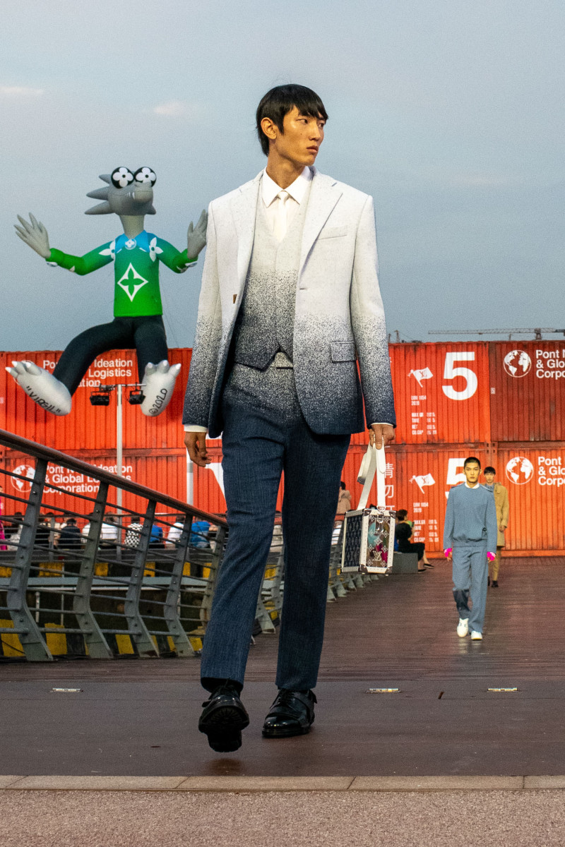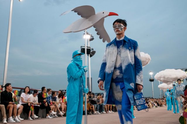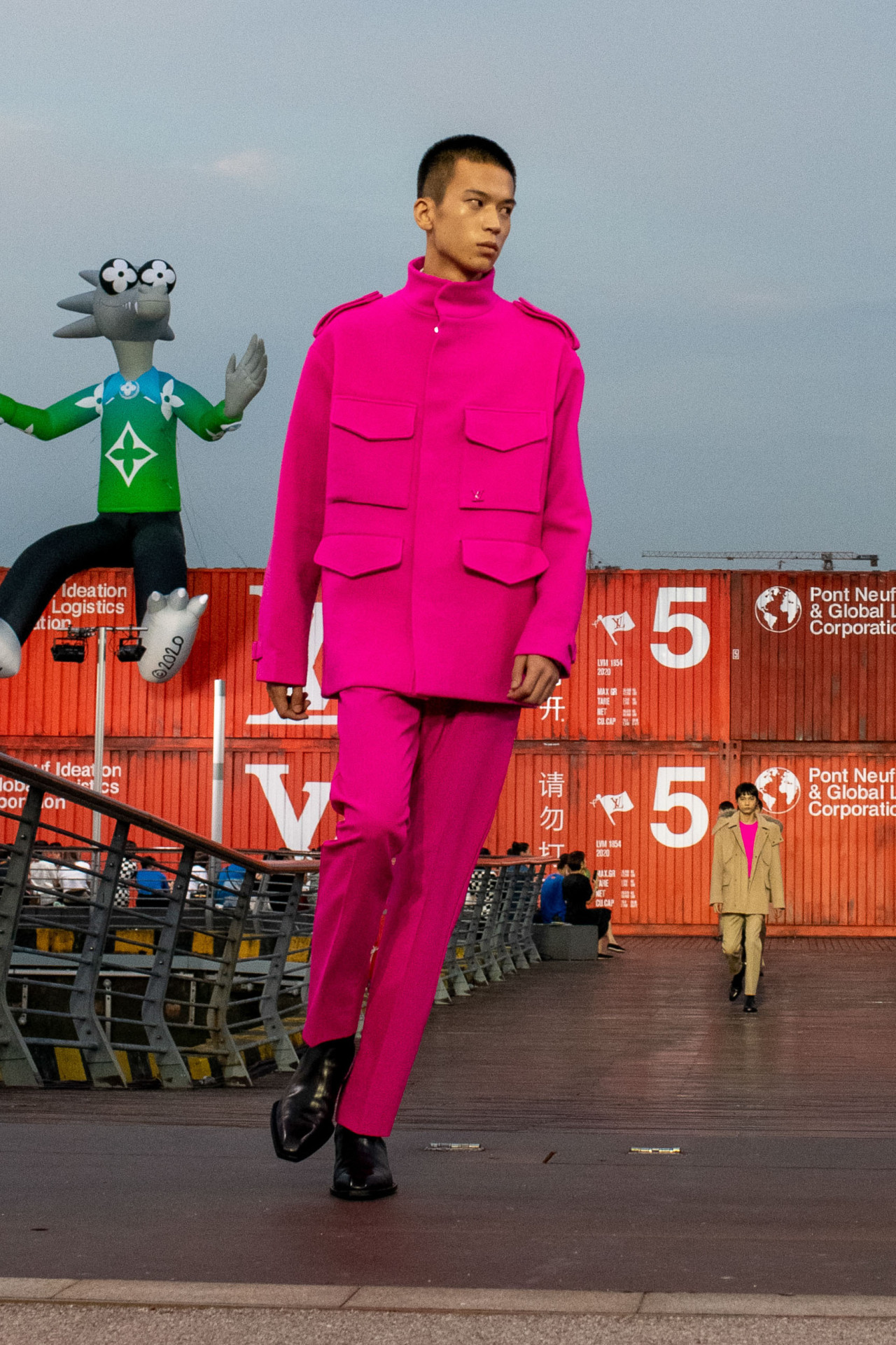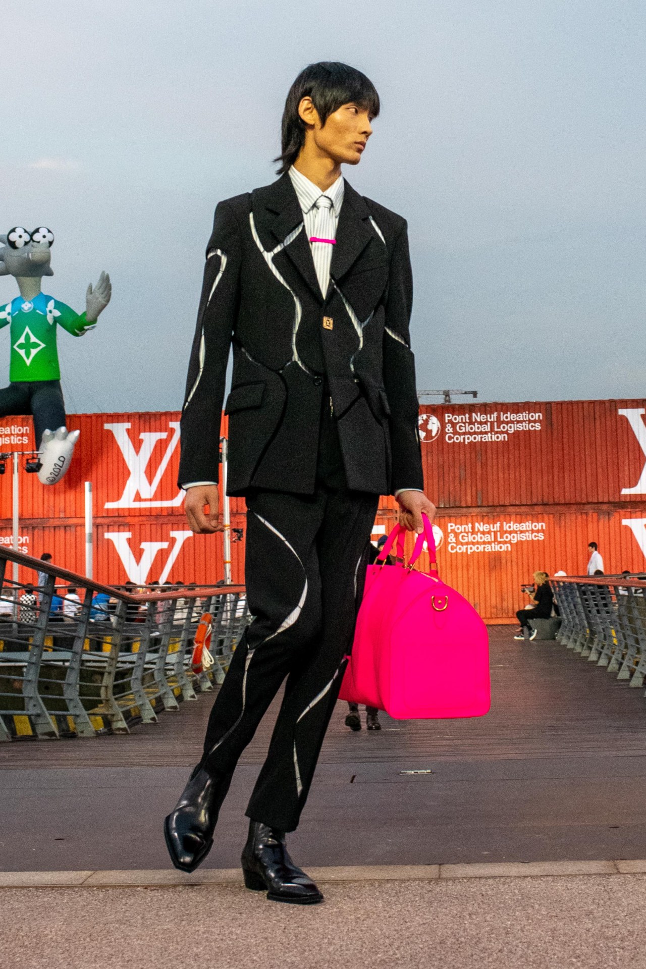 这场大秀于8月6日傍晚在黄浦江边举办,此前这些衣服已经在印度洋和太平洋的海面上漂游了将近一个月。作为疫情复工后的奢侈品牌在中国举办的第一场线下时装秀,Louis Vuitton 2021春夏男装发布会对整个行业来讲都有着重要意义。