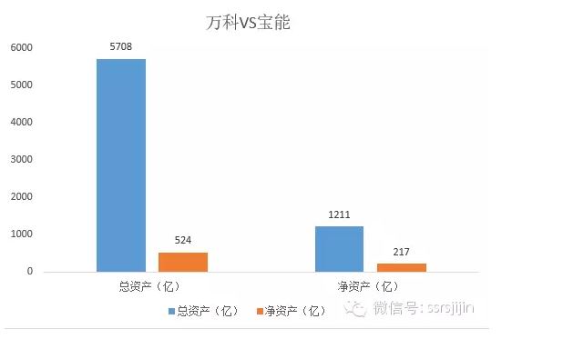 之所以说小宝能、大万科,是相对而言的,因为万科是一个庞然大物。以宝能的总资产规模,如果它是上市公司的话,2800家上市公司,能排在160名附近,一点也不小,相当于国海证券的规模。而万科在A股里资产规模是30名。它们的总资产规模和净资产规模比较是这样的。