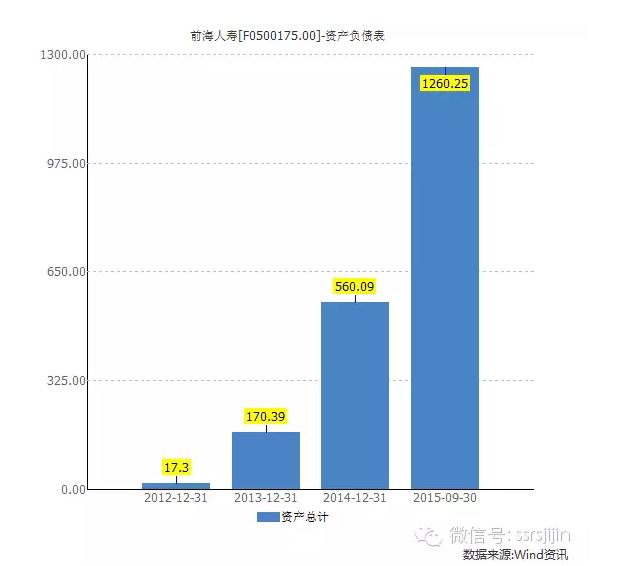 前海人寿成立没几年,但是总资产增加特别快,到2015年9月30日,已经达到1260亿规模。