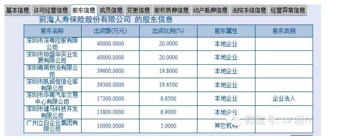 然而,我们在工商信息查到的信息,之前钜盛华只是持有20%,深圳凯诚、华南汽车、广州立白(这个也是有名的潮汕人企业,对,就是生产立白洗衣粉那家)把前海人寿的股权转让给钜盛华,达到51%。我们从其他公开信息发现,前海人寿基本所有小伙伴都是宝能的。