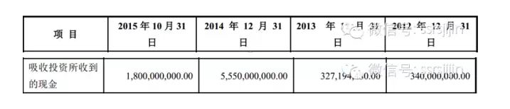 前面已经分析过,钜盛华从2014年起,实收资本大幅度的飙升,使得股本从13.1亿元扩充到101亿元,使得钜盛华的资产负债表出现了突变。截至2015年10月,宝能集团为钜盛华注入了约150亿的实收资本,而从钜盛华的现金流量表来看,2014年及2015年1-10月“吸收投资所收到的现金”仅为73.5亿元。