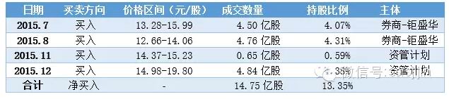 第一阶段,2015年7-8月,钜盛华通过互换(两批)和两融买入,完成时,持股8.34%,持股结构如下。