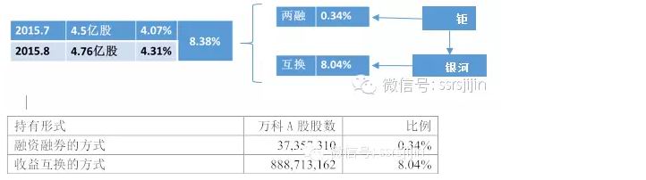 深究起来,缠绵悱恻。钜盛华买入万科的部分,分为三个阶段:A.7-8月收益互换+融资融券;B.10-11月大宗回购互换权益;C.资管产品买入。使用四种方法:融资融券,收益互换,大宗交易,分级资管(大约优先劣后1:2)。