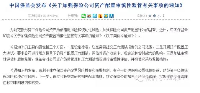 里面提及“为防范新形势下保险公司资产负债错配风险和流动性风险,加强保险公司资产配置行为的监管”。其实就是对这类行为的监管。