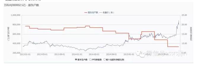 顺便提及一下,宝能在收集万科筹码的过程中,伴随着股东户数的急剧下降。今年年中时,股东户数是65万户,而到三季度股价还没大幅度飙升时,变成了33万户。最近那显然要更小了。早做功课,可以赚这笔宝能抬轿子的钱啊。