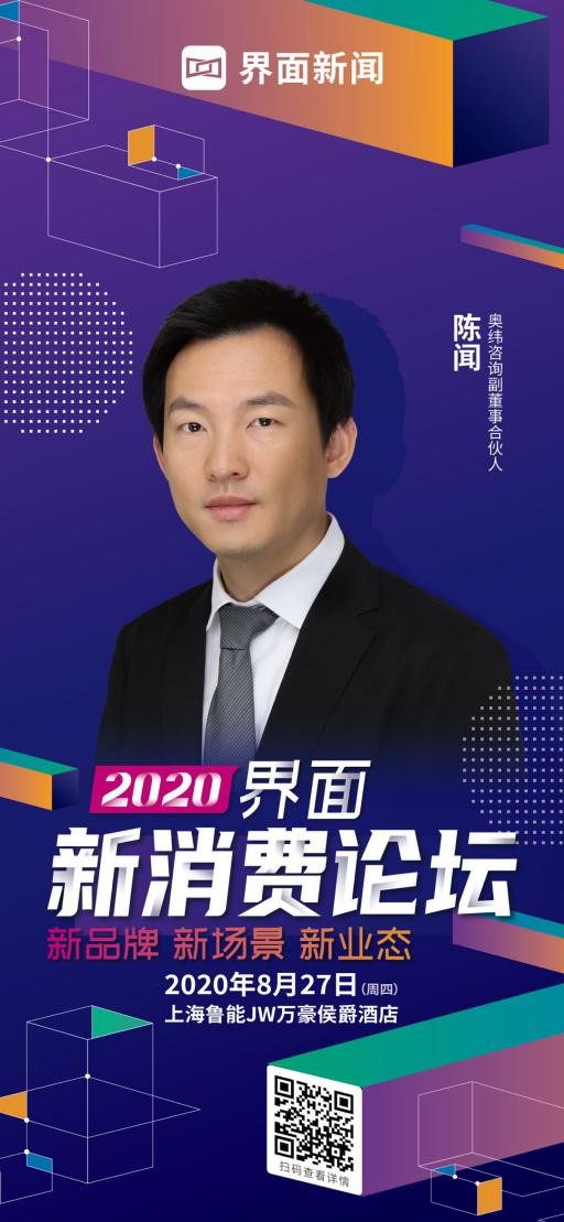 奥纬咨询副董事合伙人陈闻将出席8月27日由上海报业集团l界面新闻主办的【2020界面新消费论坛】并发表主题演讲“疫情之后,我们还需要线下门店吗?”。据悉,本届论坛将于上海鲁能JW万豪伯爵酒店举行,观众将通过各大媒体直播平台观看论坛精彩内容(直播通道将于8月正式开通)。