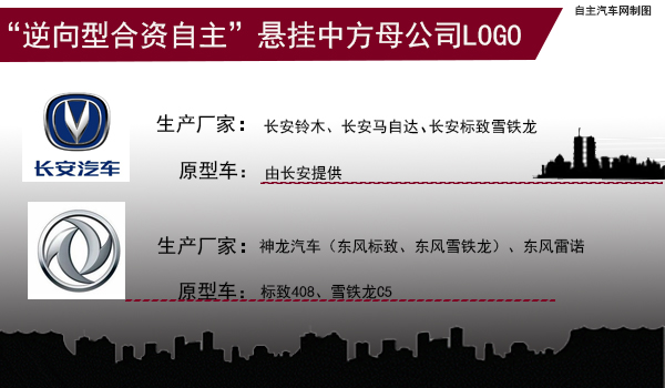 代表品牌:长安铃木、长安马自达、长安标致雪铁龙、神龙汽车的合资自主品牌