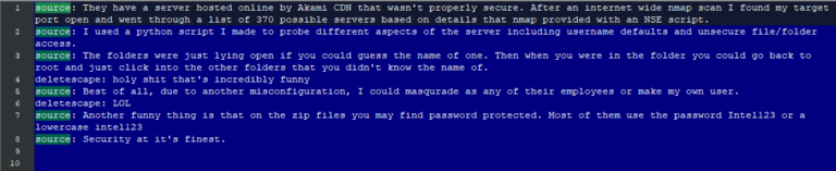 不过从ZDnet获得的匿名黑客与Till Kottmann对话截图显示,这名黑客是从一个Akamai数据分发网络上一个没被保护好的服务器中得到了这些文档。