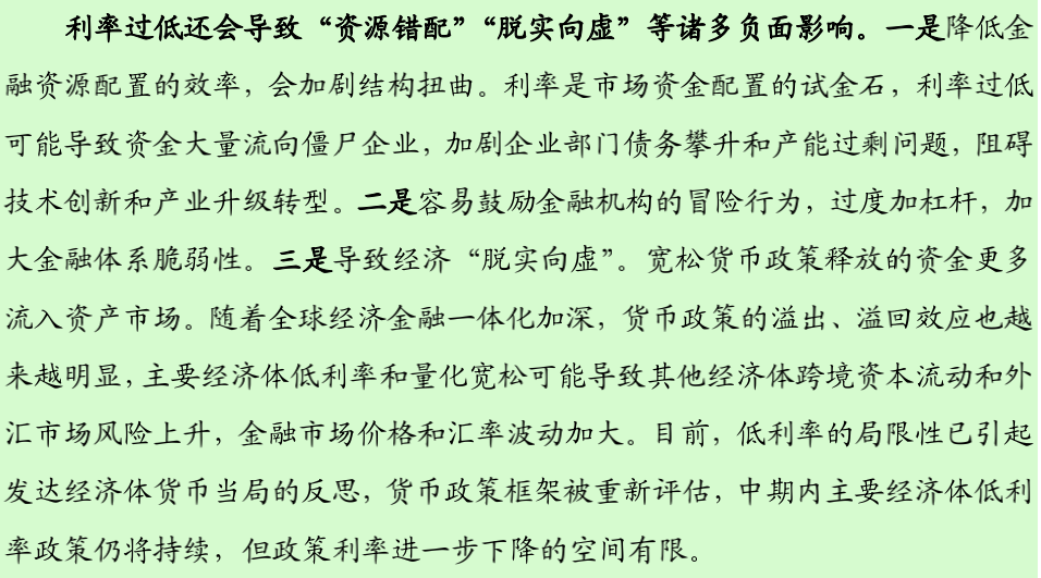 而就在8月6日,央行发布2020年第二季度中国货币政策执行报告指出,从政策效果看,低利率政策效果不及预期,作用还有待观察。利率过低还会导致“资源错配”“脱实向虚”等诸多负面影响。
