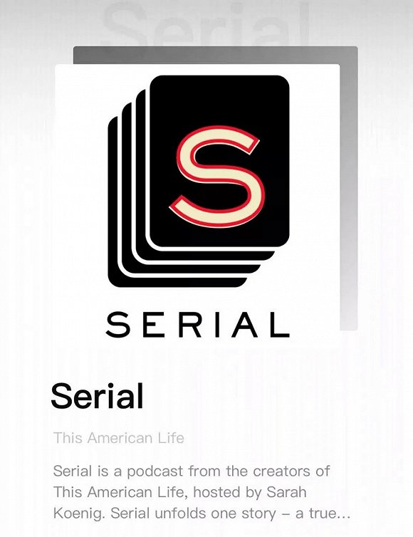 《Serial》在2014年的意外成功是美国播客兴起的开始,它是由芝加哥电台制作播出的一档叙事类播客节目。主播柯尼希是一位资深记者,同时有着多年广播制作人的履历。《Serial》虽然是非虚构类作品,但内容制作扎实,情节精良,如美剧般引人入胜。节目推出首月下载量即突破500万,还在2015年获得"广播界的普利策新闻奖"皮博迪奖。而这类PGC作品恰恰是中文播客最缺乏的。