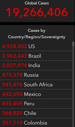 0830【全球累计新冠肺炎确诊超过1920万例】