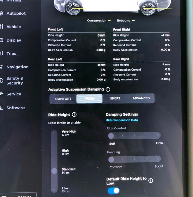 特斯拉简化了悬架控制逻辑,以更好地支持临时和长期的高度。如果手动将Ride Heights(乘坐高度)调整为High或Very High,车辆现在会在驾驶一段短距离后自动降低。
