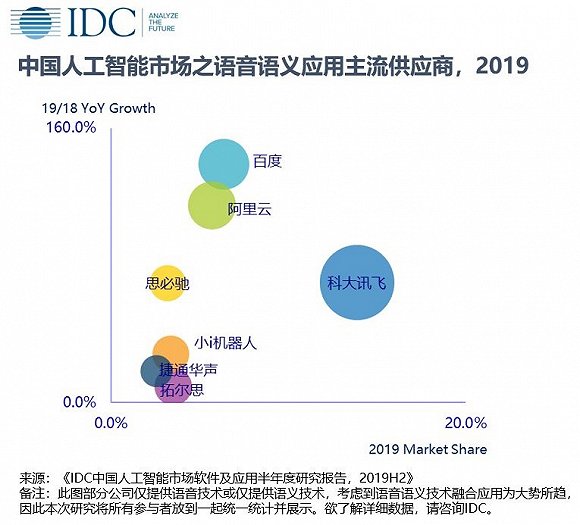 就市场格局来看,科大讯飞占据领先地位。作为智能语音领导厂商,在2019年营收更是突破百亿大关。对于人工智能这条赛道深耕二十多年的科大讯飞来说,意味着其人工智能技术布局成果显现,也预示着将迈入新的里程碑。