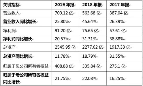 2019年,荣盛发展实现营业收入709.12亿元,同比增长25.80%;营业利润132.97亿元,同比增长20.13%;实现归母净利润91.20亿元,同比增长20.57%。截至2019年末,公司总资产2545.95亿元,同比增长11.78%;归属于上市公司股东的所有者权益408.88亿元,同比增长21.75%。各项经营指标均保持了良好的增长态势。