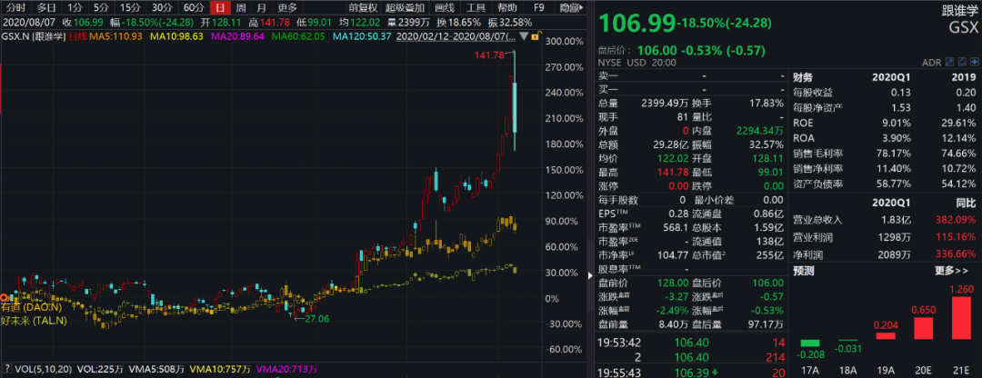 可能是跟谁学的反应给予了投资者信心,也可能是在线教育风头正猛,没有太多事实依据的做空报告敌不过市场对热门板块的追捧。