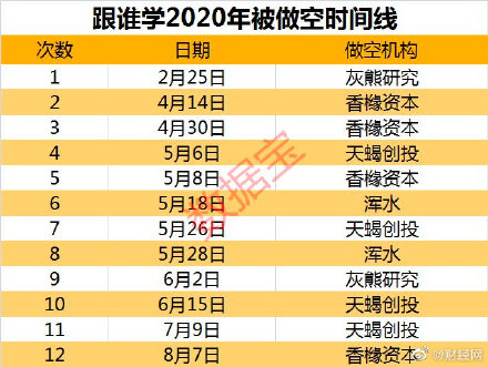 从2月25日被Grizzly Research(灰熊研究)做空,到8月8日这一次,跟谁学半年时间内被浑水、灰熊、香橼、天蝎创投4家公司轮番做空了12次,这频率绝对前无古人,基本也是后无来者。