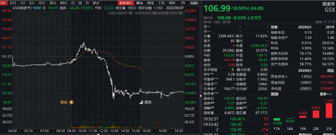 跟谁学8日开盘时涨逾8%,在香橼投资发布推特后急速转跌,收跌18.5%,当日振幅达24.28%。