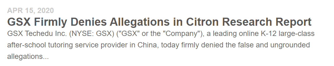 北京时间8月8日,做空机构香橼研究今年第四次做空跟谁学(NYSE:GSX)。