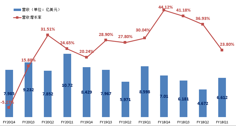 如果说新东方Q4受到黑天鹅疫情影响,线下和留学业务停滞,业绩下滑具有偶然性,那么拉长时间线来看,会发现事实并非如此上,新东方早已显现增长乏力端倪。2017年6月至2020年5月,新东方营收增速一路下滑,3年时间仅从6.6亿美元增长至8.0亿美元,增长比率为21%,增速远不及高歌猛进的好未来。
