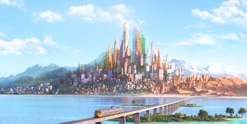 从迪士尼动画对外发布的概念图看,这个动物乌托邦的设计更加自然化,建筑的线条更加流畅,色彩更加多元。