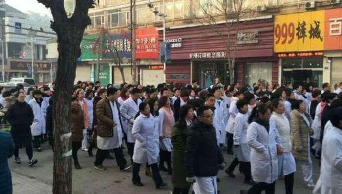 死者家属的行为激怒了永清县人民医院的医护人员,导致了第二天上午的集体维权行动。