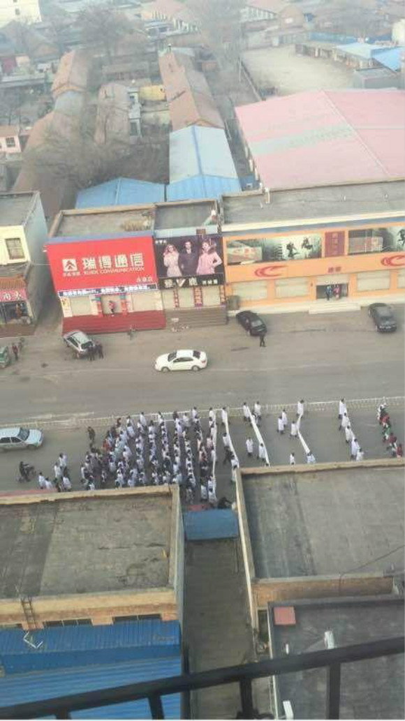 12月19日上午,河北省廊坊市永清县上百名医护人员走上街头维护自身权益。