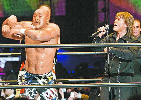 在小巨蛋举办的“全日本职业摔角大赛”上,伍佰为自己的“超级偶像”武藤敬司担任出场演唱歌手