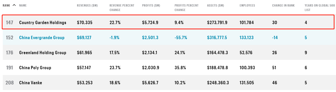 继2017年首次登上《财富》世界500强榜单之后,碧桂园榜单排名连续四年不断提升,累计共跃升320位,展现出强劲的增长势头。