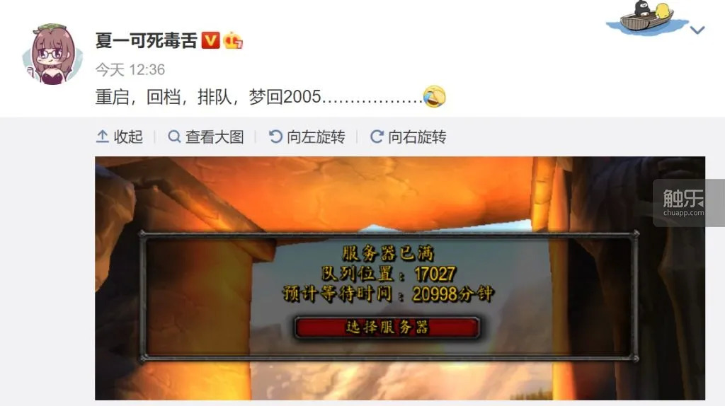 这是去年8月初怀旧服测试时的情况,但正式开服后也好不到哪去