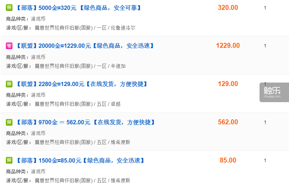 有需求自然就有市场,玩家们很快发现一些游戏交易平台上推出了怀旧服金币交易服务,淘宝和微信上也陆续出现了大量金币卖家,让玩家可以用人民币购买怀旧服金币。这无疑就是最快的金币获取方式,不少人开始在这些平台上买金。去年9月的时候,满级玩家还不多,金币产出有限,1金几乎就等于1元人民币。10月底,满级玩家渐渐多起来,比例就下降到1比0.35左右,此后便一直保持下跌趋势。随着金团日益盛行,买金的玩家也日益增多,金团里的土豪老板出价也越来越高。