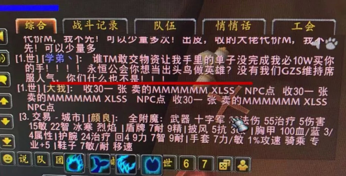 为了延缓开门时间,让自己顺利完成黑虫子的订单,他们还故意去中立拍卖行拦截捐献物资,甚至对那些捐献积极的玩家恶语相向,以“10万元买你一只手”相威胁。