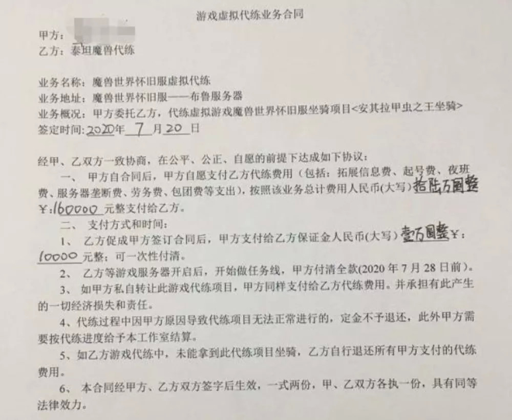 工作室群里流传的一份魔兽合同,16万元成为开门英雄