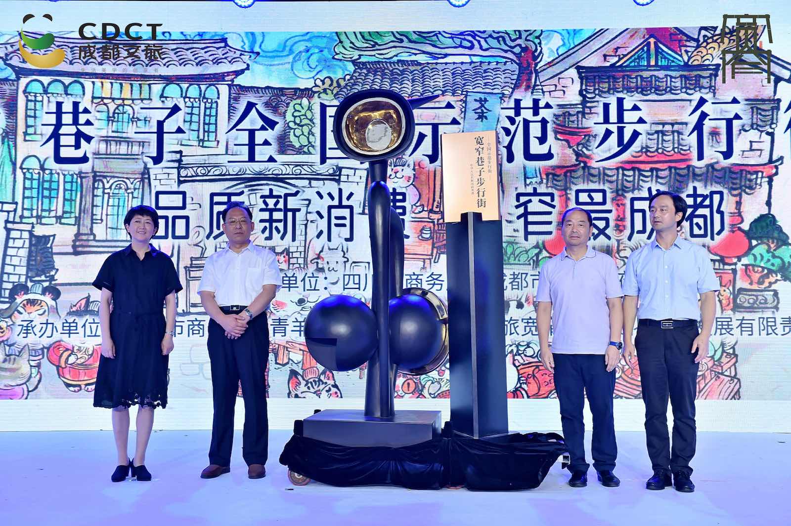 在8月10日晚上举办的宽窄巷子全国示范步行街揭牌仪式上,商务部流通业发展司司长郑文、四川省商务厅厅长刘欣、成都市青羊区区委副书记、代区长蒋蔚炜进行揭牌。此次获得“全国示范步行街”这样的“国字号殊荣”,对宽窄巷子而言是一个全新的起点。未来,在承载厚重城市记忆的同时,宽窄巷子也将创造出更多属于这个时代的新的价值。成都宽窄巷子荣获首批“全国示范步行街”称号,是荣誉,更是宽窄巷子工作新的起点。未来成都将围绕国际消费中心城市建设,秉承高质量发展目标,持续推进宽窄巷子步行街优化升级。