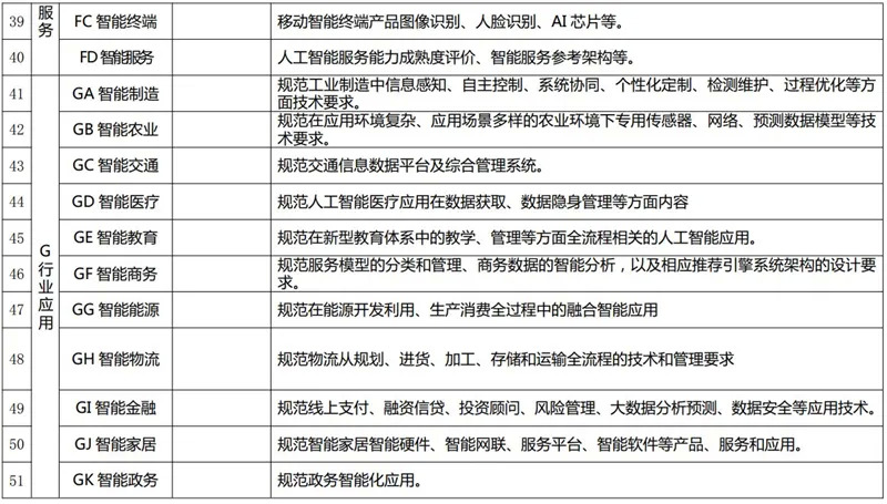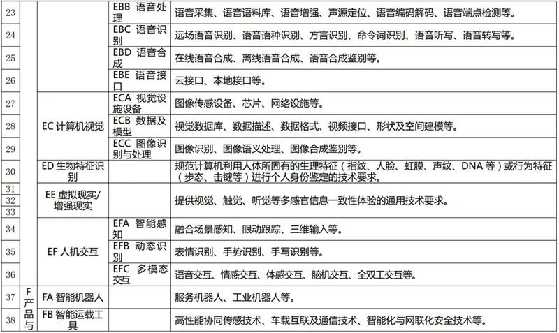 F 产品与服务标准包括在人工智能技术领域中形成的智能化产品及新服务模式的相关标准;