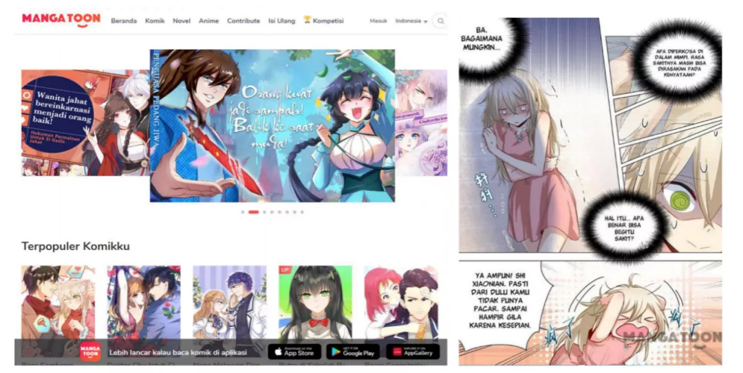 如果说印尼的纸质漫画市场被日本垄断,电子漫画市场则是由LINE Webtoon和Kakao Page这样的韩国电子漫画软件领跑,Manga toon这样的中国漫画公司积极入局,而Ciayo Comics、Re:On这样的本土电子漫画软件也在积极挖掘本土的漫画创作人才。