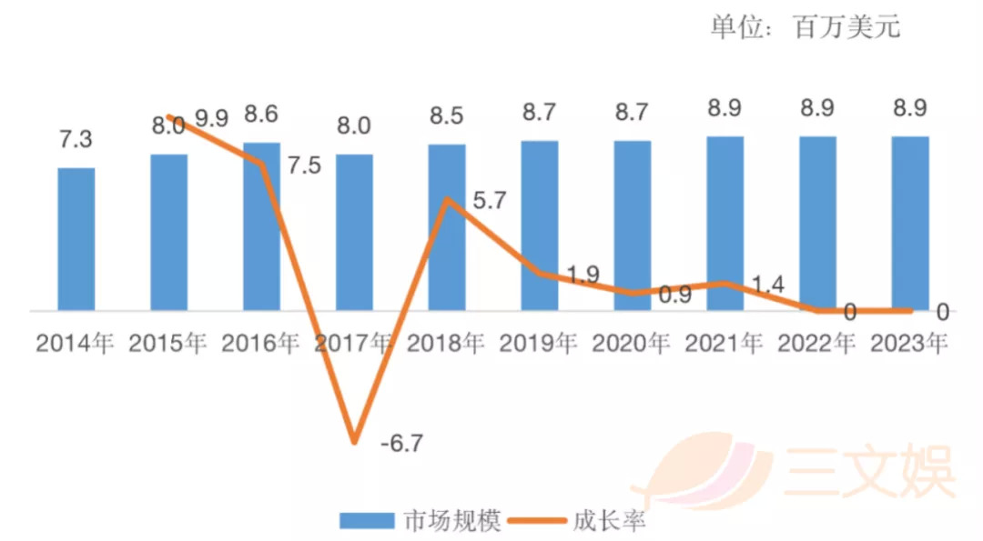 2019-2023年,印尼漫画市场规模将以0.8%的年复增长率快速增长,到2023年达到现6200.63万元的市场规模。
