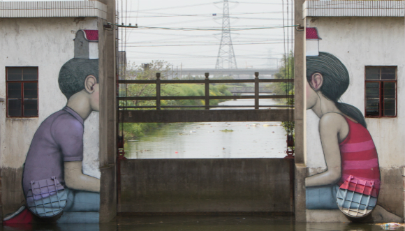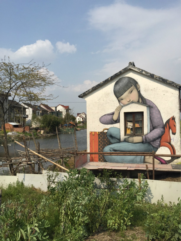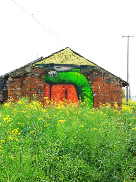 来上海工作多年,康定路曾是吴佳伦在上海的第一个家。因为要被拆掉了,她决定回来看看。她看到了那几幅传遍了社交网络的墙画,心生感动,来到上海这么多年,这些画仿佛又让她重新认识了上海。她想,如果这位艺术家能够加入她发起的”为爱上色“公益项目就好了。由立邦发起的“为爱上色”计划将于2016年携手柒先生, 邀请全球具有人文关怀特质的艺术家来到中国及亚洲,为偏乡小学和公共空间的城市地景绘制具有当地文化特色的墙画,为学校及城市创造艺术人文风景。但艺术家亲自参与墙画创作,实属首次。