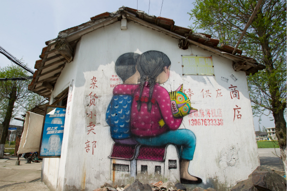 与南京西路仅一箭之遥的上海康定路600弄曾是个典型的石库门街区。和上海许多被拆迁的街区一样,它原本应该很快就会消失在人们的眼中和记忆里,不会掀起一丝波澜。但今年年初,它因法国墙画艺术家柒先生(Julien Seth Malland)在这老城厢斑驳白墙上留下的墙画而引起了轰动。
