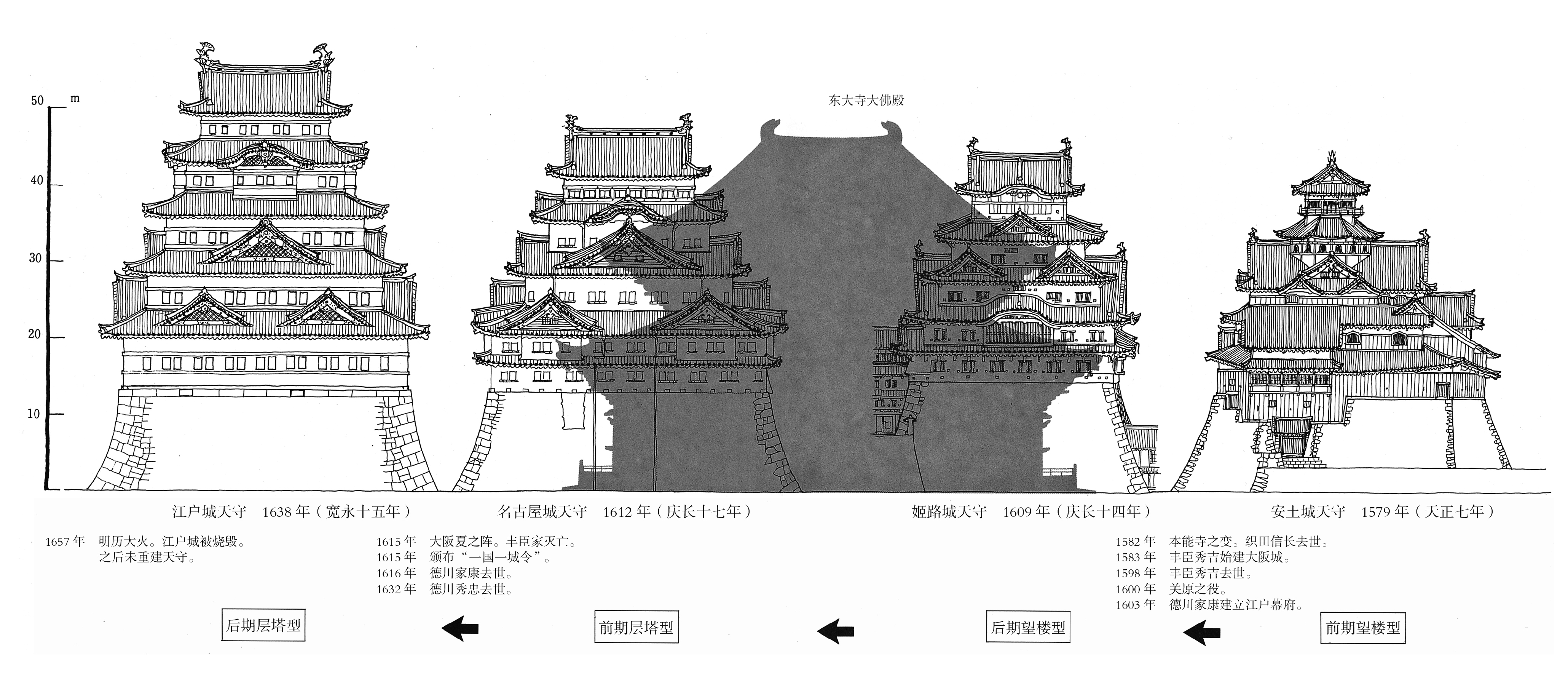 中井正清设计的环立式大天守,是日本历史上前所未有的高层建筑。