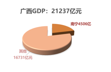 2019年南宁GDP为4506.56亿,广西GDP为21237.14亿元,南宁GDP仅占广西的21.22%。